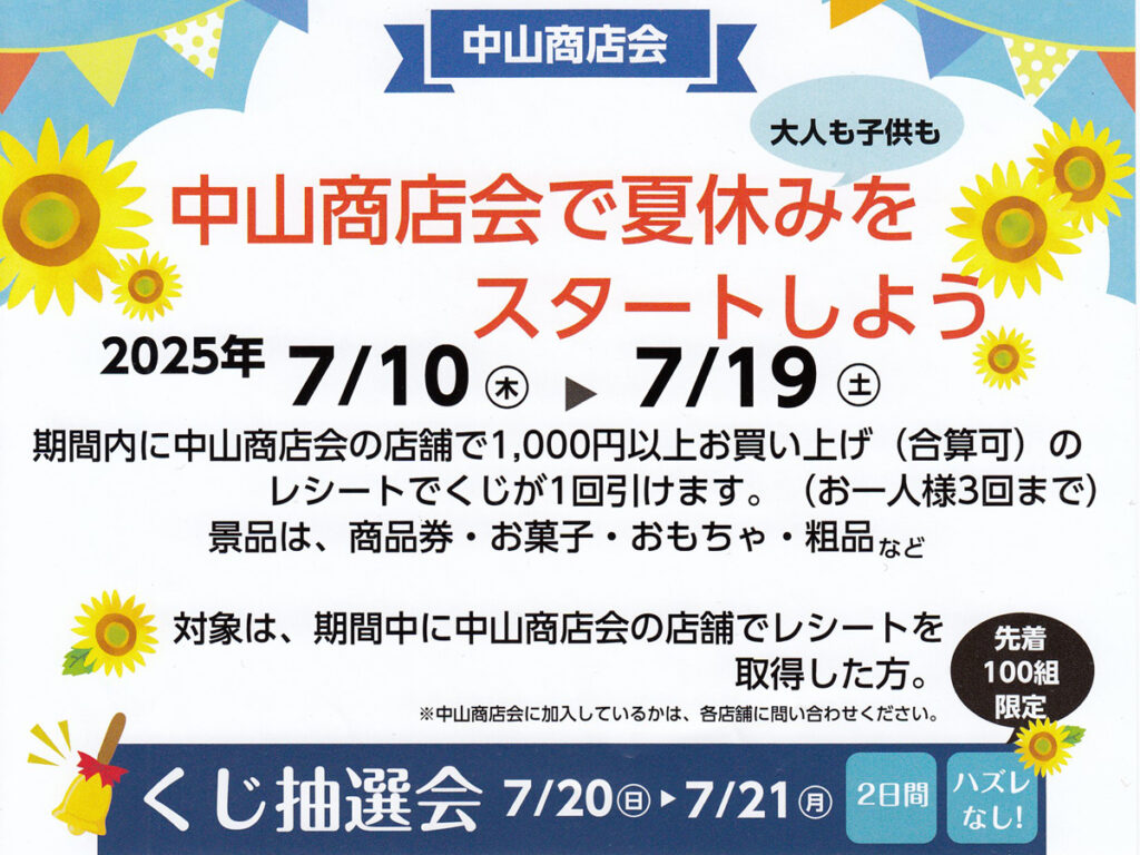 7月10日~19日、家族で楽しむ!中山商店会夏休みワクワク抽選会 […]