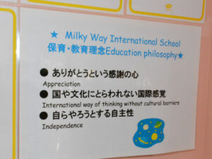「ミルキーウェイ」には園の目標として次の言葉が描かれていました。