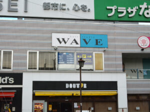 JR下総中山駅の北口真ん前のビル「プラザなかやま」に、美容室「WAVE(ウェーブ)」はあります。駅から徒歩1分、駅を出ると「WAVE」の大きなロゴが目に入ります。